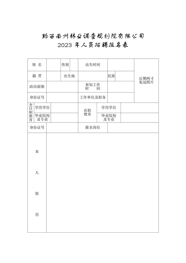 附件:黔西南州林业调查规划院有限公司2023年人员招聘报名表