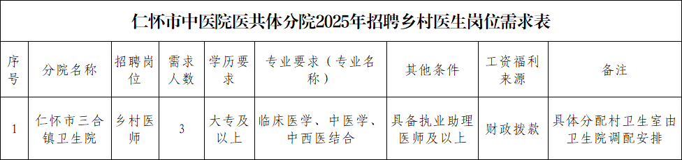 (二)招聘人员居住地(常住地)或户籍地在仁怀市内且符合乡村医生准入条件的人员。